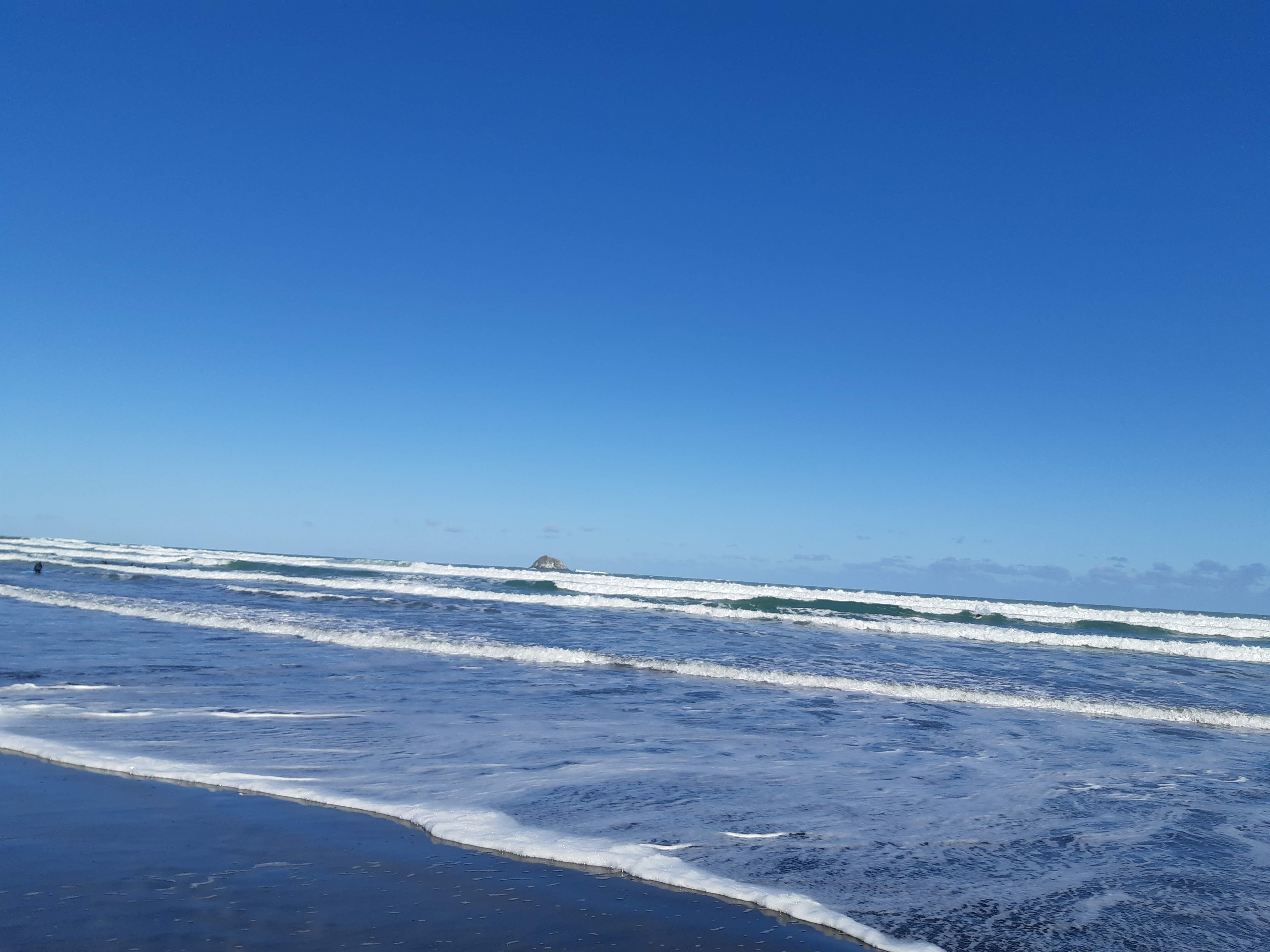 The dramatic black sand beaches and gannet colony of Muriwai, on New Zealand's west coast.